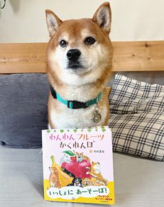 ② 「#わんわんフルーツかくれんぼ」のタグを付け、ご購入いただいた「わんわんフルーツかくれんぼ」と、「うちのこ」(例:わんちゃんなどのペットはもちろん、大事にしているぬいぐるみなども可)を一緒に撮った写真を投稿。投稿の文章内で投稿者の好きなフルーツを教えてください。