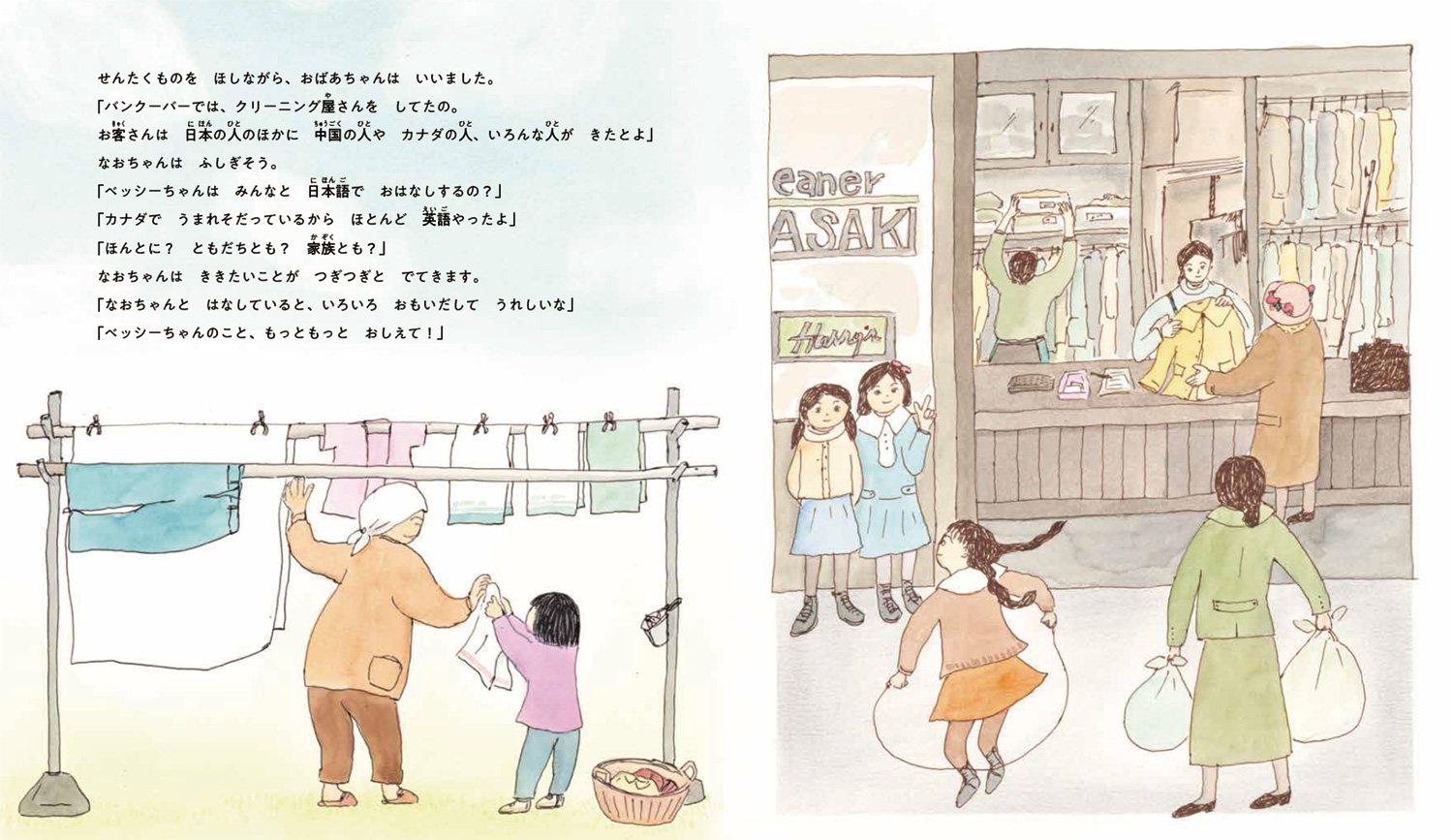 ベッシーちゃん おはなしの絵本 小低から 石川えりこ/作 定価:2,090円 なおちゃんのおばあちゃんはカナダで生まれそだちました。カナダでの名前は「ベッシー」。ひとりの移民の女の子の記憶の物語。 判型サイズ:27×23cm ページ数:42ページ ISBN978-4-7520-1169-9 配本日:2026年05月14日 この絵本をシェアする 絵本を購入する Amazon 紀伊國屋書店 楽天ブックス